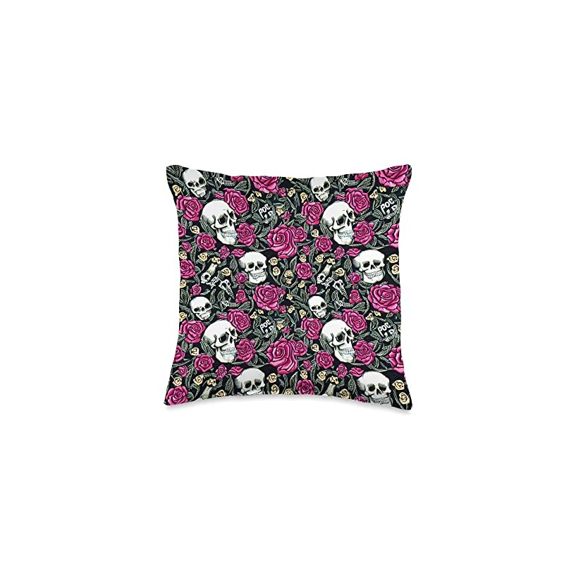 Gothic Floral Skull Rose Throw Pillow