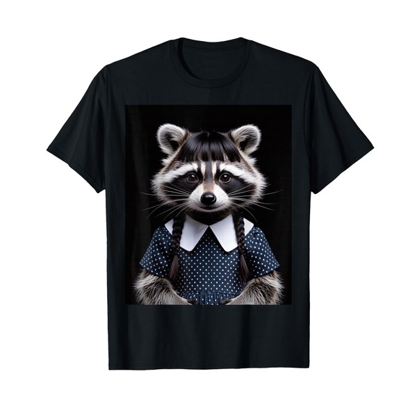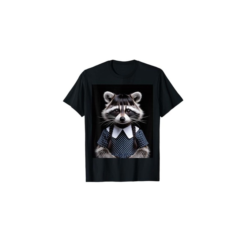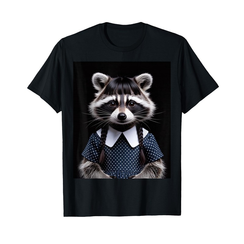 - Show off your unique vibe with this photorealistic raccoon dressed in gothic fashion. A funny twist on classic dark style, it’s ideal for animal lovers, Halloween fans, or anyone who enjoys eerie charm and playful woodland character art on Wednesdays.