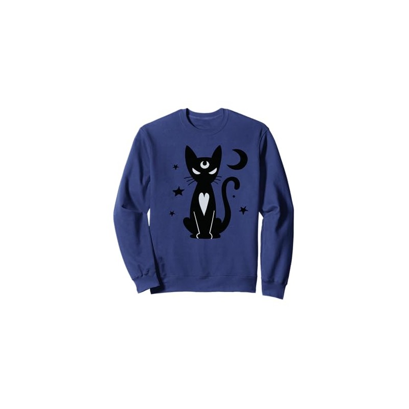 - Mystical black animal cat design with crescent moon on forehead, beautiful eyes and gothic heart accent surrounded by stars and night elements. Great for men, women, boys and girls who love Halloween, witchcraft, occult vibes, gothic art and spooky cats.