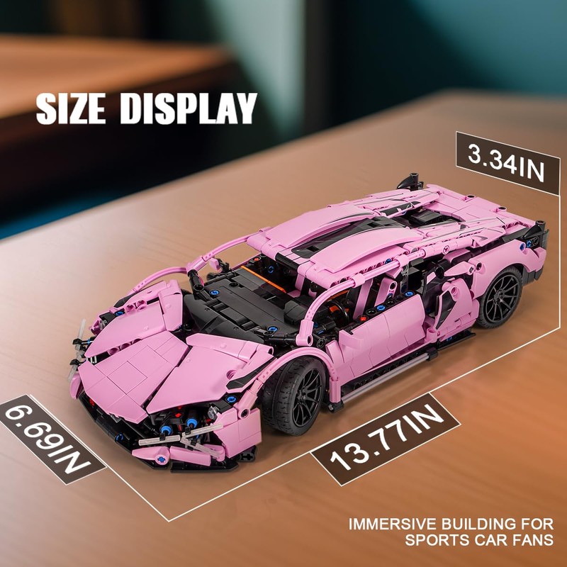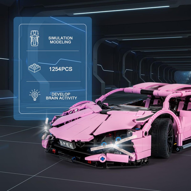 GOTIMON Pink Sports Car Building Blocks Set Toy, Collectible MOC Car Model, Building Blocks for Adults and Kids (1254 PCS)