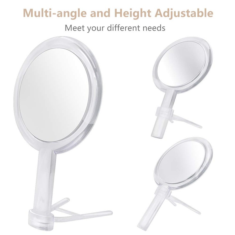 1X & 10X Magnifying Double Side Hand Makeup Mirror with Stand, Handheld Vanity Mirror, Clear