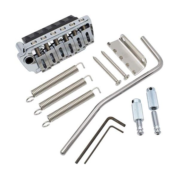 - The tremolo block is designed to allow the strings to contact the saddle without touching the block as it passes through which increases sustain and tuning stability
