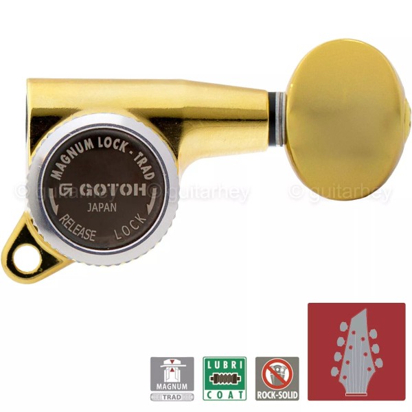 GOTOH NEW Gotoh SG381-05 MGT Locking Tuners 7-String OVAL Buttons L4+R3 Set 4x3 - GOLD