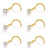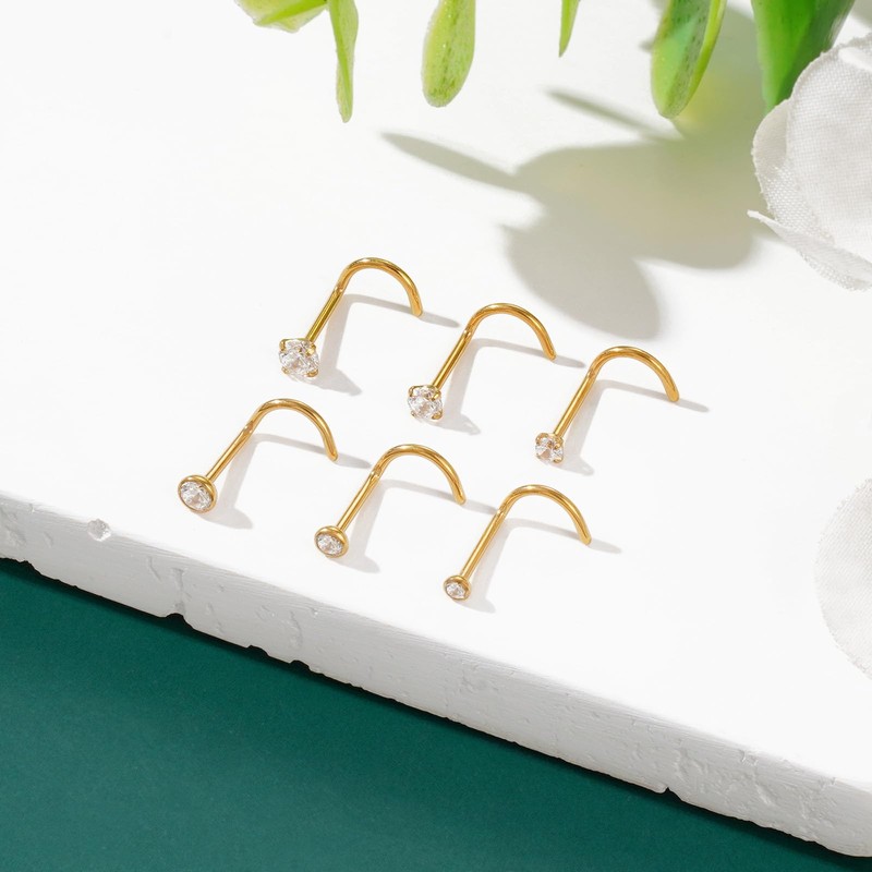 Gotumo 20G Nose Rings Titanium Nose Studs Cubic Zirconia Corkscrew Nose Piercing Jewelry Hypoallergenic Nose Rings Studs for Women Men 6pcs Set Gold(5), 20G Corkscrew 6pcs, Metal, cubic zirconia