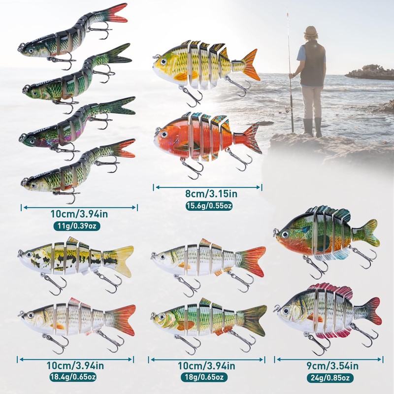 GOTURE Joint Lure, Articulated, Natural x Vivid Combo Set, For Both Freshwater and Saltwater, Lifelike Bass Trout Pike Salmon, Swimbait, Large Motion, Precision x Reflective Strong Hook, Fishing Gift