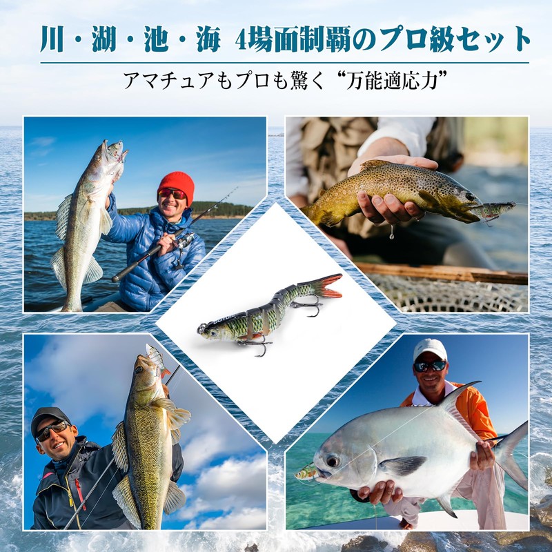• (Articulated, Highly Flexible Construction) The GOTURE multi-jointed lure has a high probability to attract fish with a natural swimming action, and has excellent flexibility in the water to fully reproduce the smooth swimming action (sudden turning, loose, S-shaped swimming). The reinforced outer coating gives the bait a lifelike feel that solves the alertness of predators and greatly increases the chance of attacking