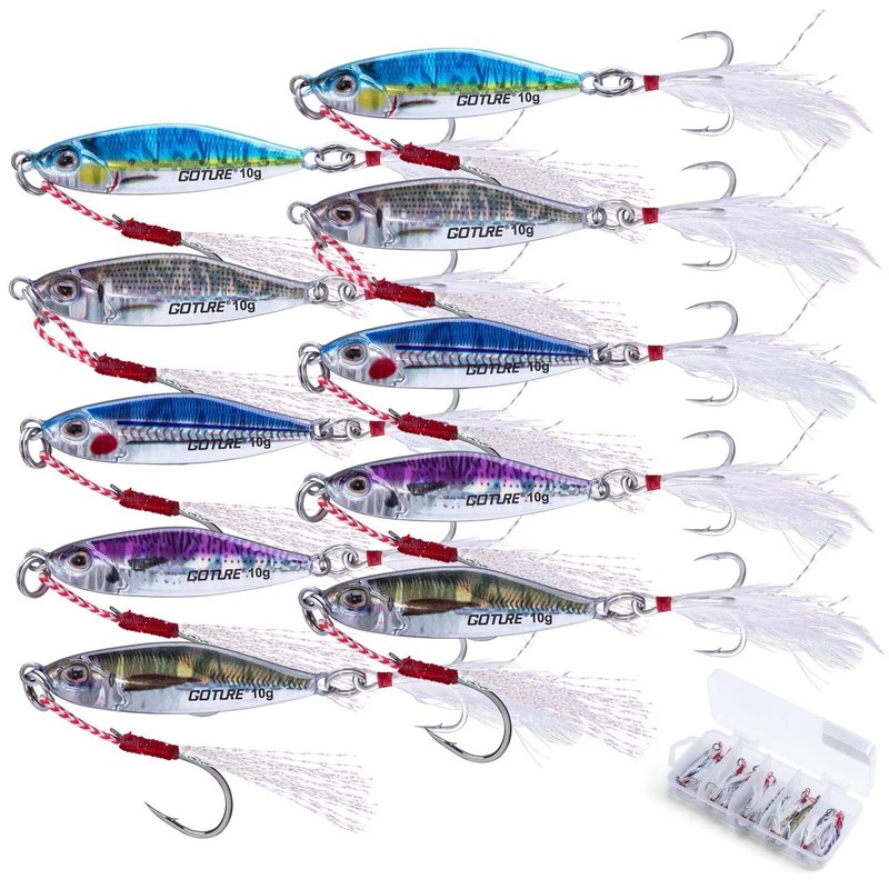 Goture Metal Jigs, Set of 10, 0.3 oz (10 g), Jigging, Sea Fishing, Boat Fishing, Lures Set, Metal Jig Set, Lures, Slow Jigging, High Distance, 3D Laser Coating, Realistic, Surf, Madefish, Root Fish,
