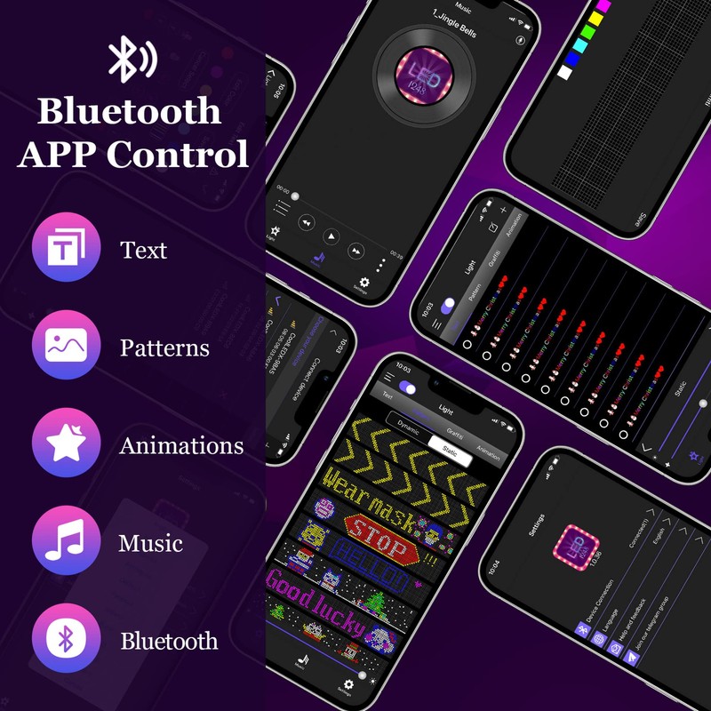 • 【Custom Content】 You can DIY design text, patterns, animations according to your own needs and scenes, can also choose a variety of display mode and you can also adjust the brightness and speed