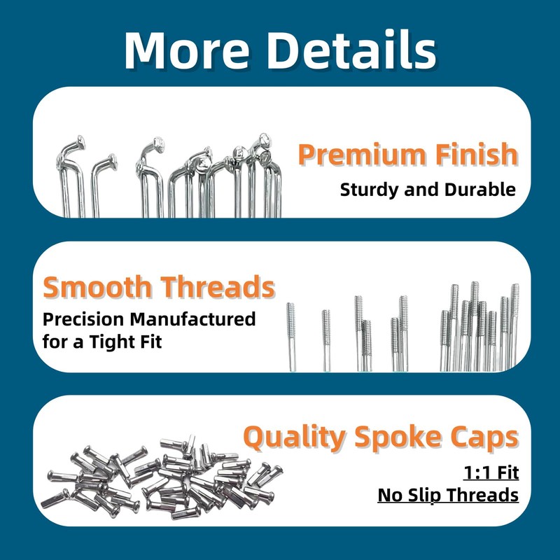 - Our bike spokes are made of high-strength carbon steel for durability and rust resistance.