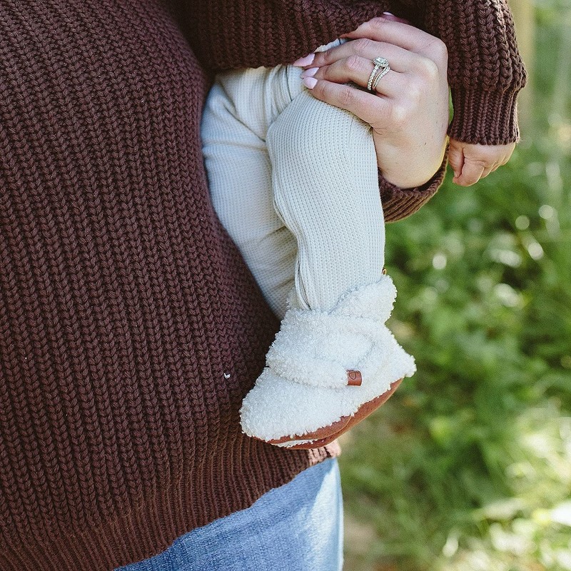 Never lose another sock. A super-soft organic baby boot that is adjustable and stays on no matter what. Featuring our two-part adjustable closure system that remains secure on your baby's feet and grows with them. 6m+ has extra grip on soles for those first wobbly (and adorable) steps.