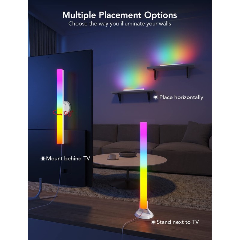- Easy to Set Up: The TV light bars can be adjusted three ways to fit your lighting needs. Use the mounting brackets to mount them behind the TV or stand them next to the TV. The light bars can also be placed horizontally without the mounting brackets.