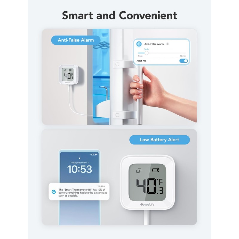 Special Feature:2 Years Free Data Storage, Smart Anti-False Alarm, 24/7 App Alarm, ±0.9°F High Accuracy, WiFi & Bluetooth