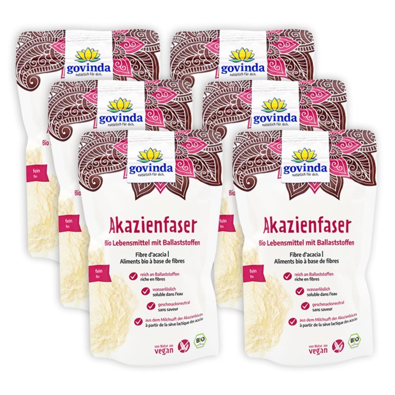 Govinda Organic Acacia Fibre Powder, Rich in Natural Fibres, Vegan, Well Tolerated, No Additives, Neutral in Taste, 6 x 100 g Economy Pack