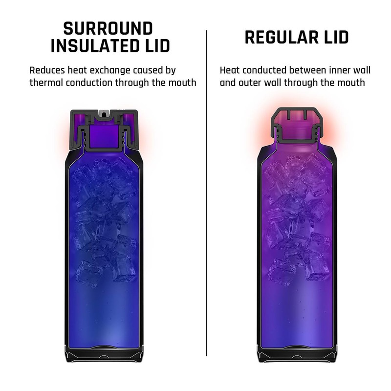 - SURROUND INSULATED LID: The lid is often the weak point of vacuum bottles. The T5 features double-wall insulation around the lid, reducing heat conduction and enhancing temperature retention.