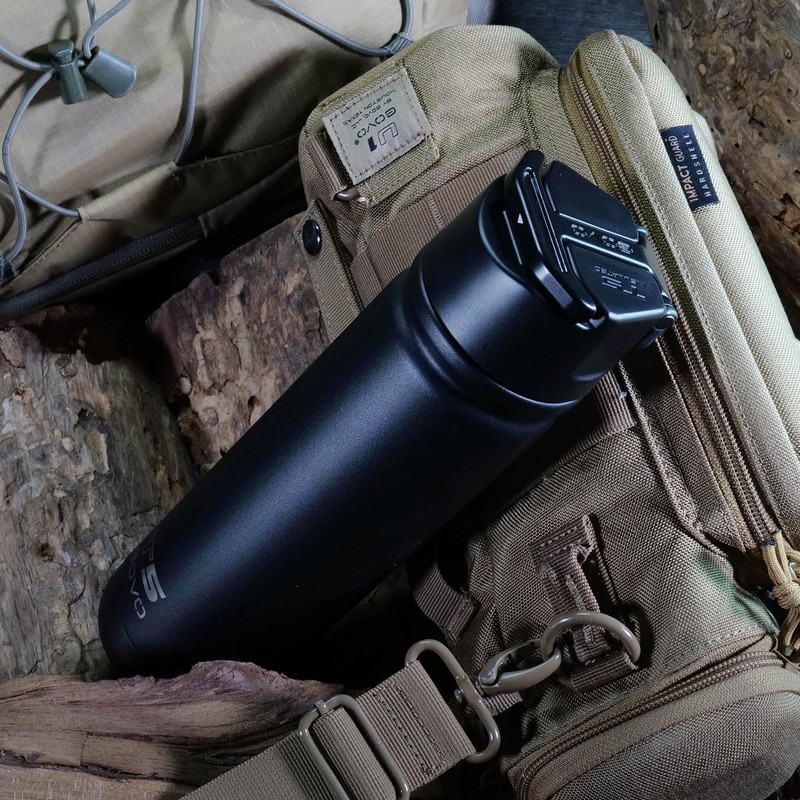GOVO T5 Bottle, Vacuum Insulated, Magnetic Handle, Stainless Steel with Surround Insulated Lid (Black/Black, 24 oz)