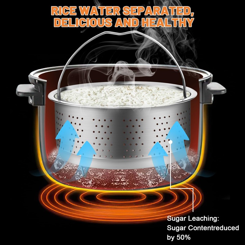 ✔ Finely crafted design of the steamer basket with sturdy structure and wide, permeable basket to ensure that the steam can fully penetrate and allow quick and even food preparation.