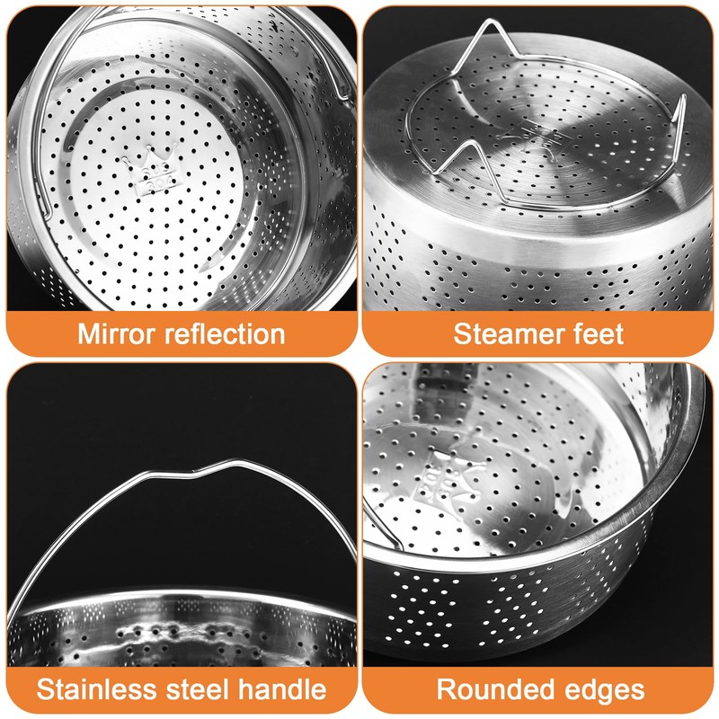 The steamer insert for pots is an essential versatile cooking tool in your kitchen. Made of high quality food grade 304 stainless steel, it is not only sturdy and durable, but also safe and hygienic to provide you with long-term cooking safety.