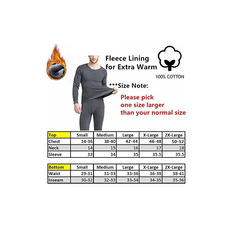 Goyoma Men Winter Fleece Lined 100% Cotton Thermal Long Johns Top Bottom Underwear Set, Gary, Large
