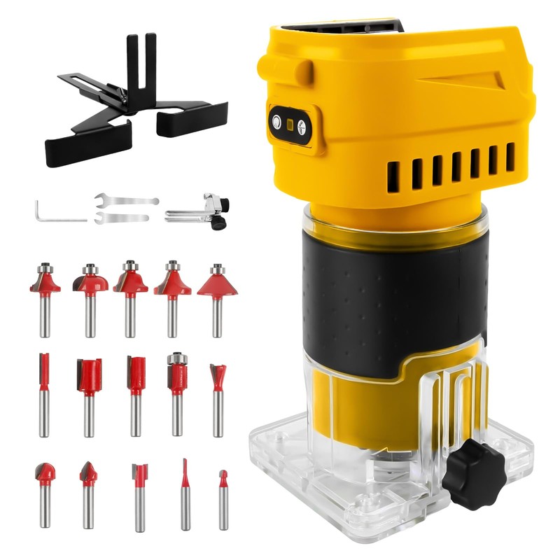 Gpaentsn Cordless Router Compatible With Dewalt 20V Battery, 6-Speed, 30,000 RPM, 850W Brushless Handheld Palm Routers for Woodworking Hand Edge Trimmer with 15 PCS 1/4" Router Bits Set (No Battery)