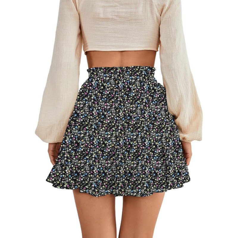 GPHY Women's Floral Ruffle Mini Skirts Cute Elastic Hight Waist Boho Flowy Short Skirt(Floral L ,L)