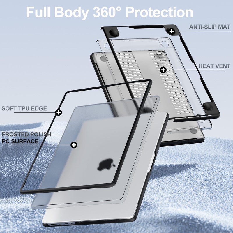 - Exquisite balance, excellent heat dissipation: Protect your MacBook while keeping it lightweight, so you can carry it effortlessly without straining it. The bottom shell has heat dissipation holes for easy heat dissipation. Four non-slip silicone feet keep your laptop safe and stable, while adding a few millimeters of surface spacing to maximize air circulation, heat dissipation and slip resistance.