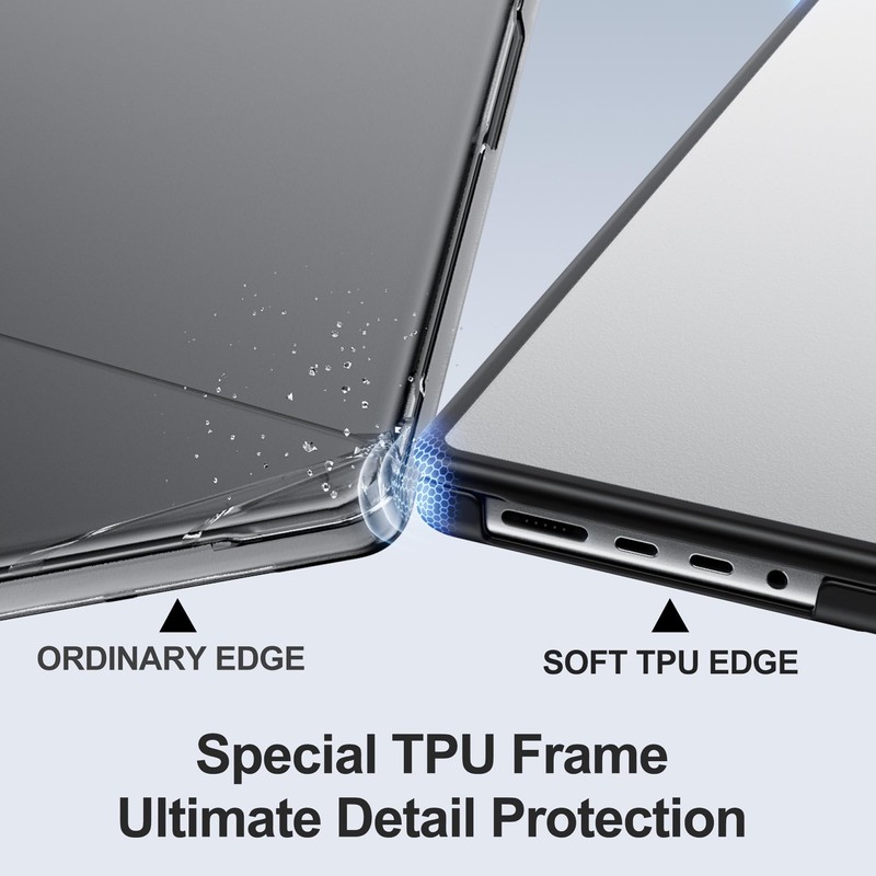 - Special TPU frame, ultimate detail protection: the edges and corners of the case are made of flexible TPU material, which can effectively protect your laptop in the event of a collision and are not easy to break. Easy to install and remove, the improved TPU soft frame design can better protect your laptop during disassembly to avoid scratches, and do not let the cheap protective case scratch your laptop.