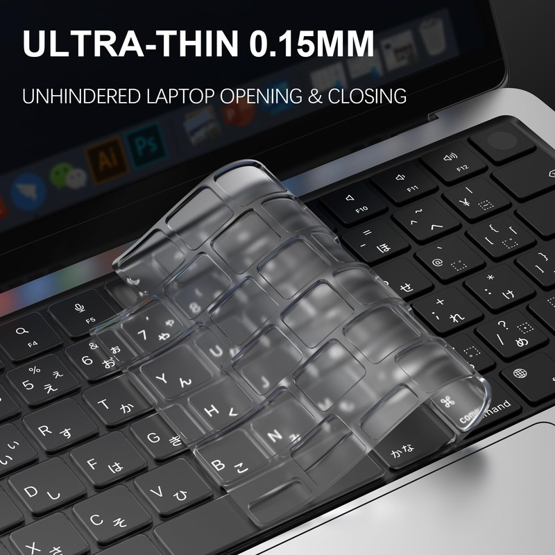- Precise cut and ultra-thin fit: Specially designed for MacBook keyboards, the precision cutting process ensures that the keyboard cover fits perfectly with your MacBook keyboard without affecting the normal use of Touch ID and avoiding incorrect alignment or deformation. The 0.1mm ultra-thin design restores the feel of bare metal without affecting the opening and closing of the laptop.