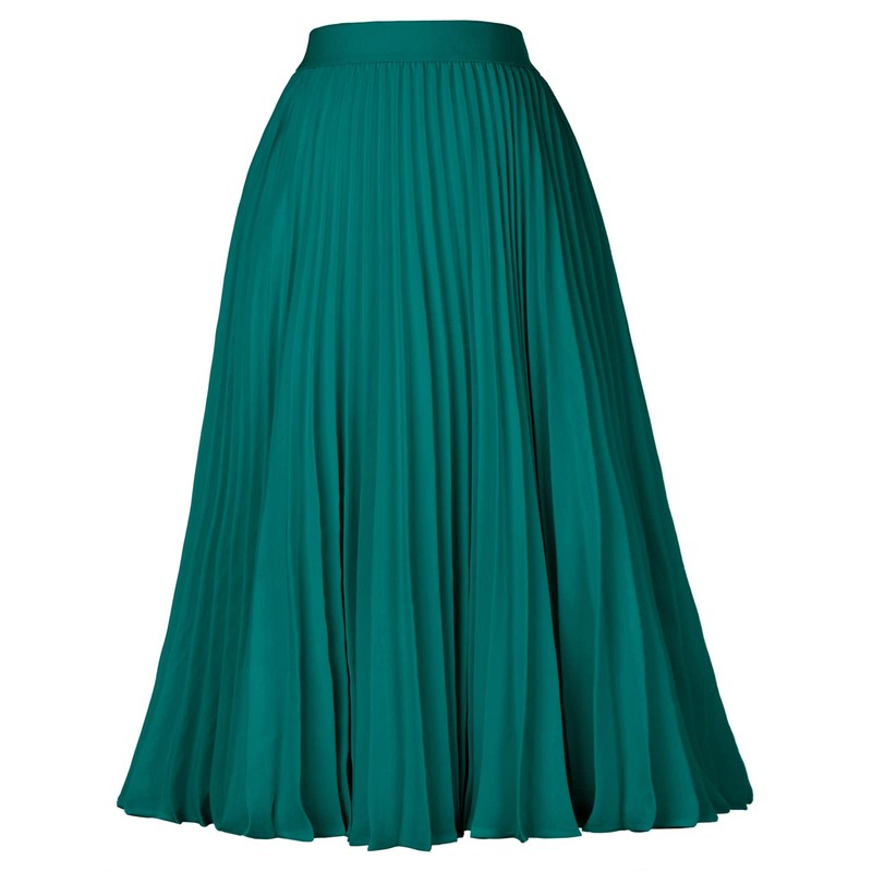 GRACE KARIN Womens Classy Vintage Chiffon Swing Pleated A-line Skirt Peacock Blue XL