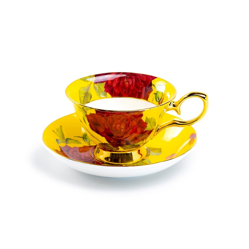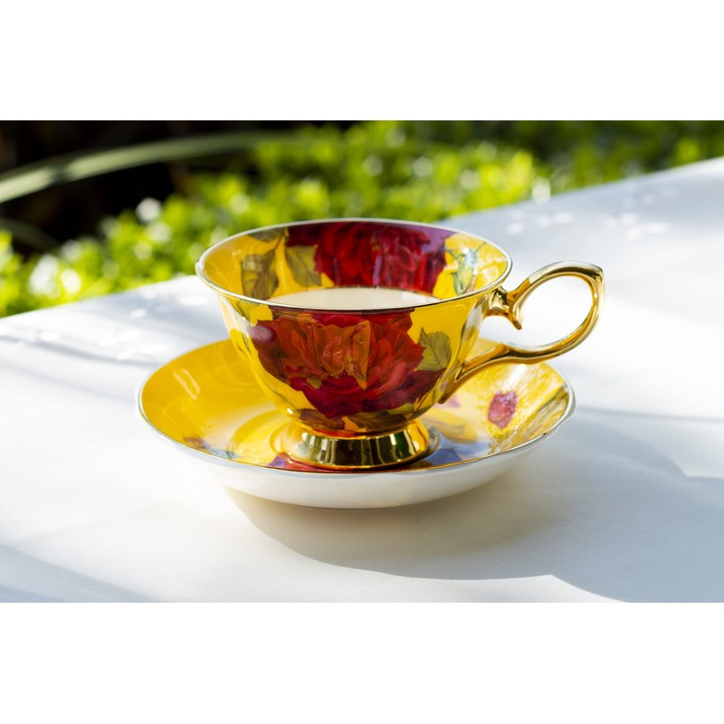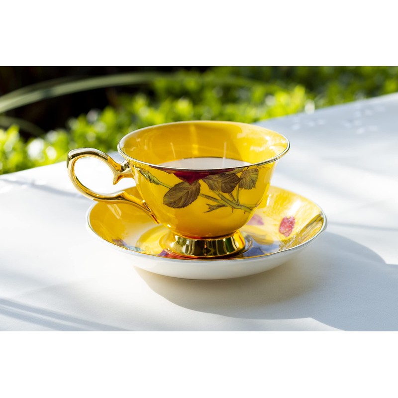Grace Teaware Stem Rose Bone China Tea Cup and Saucer (Yellow)