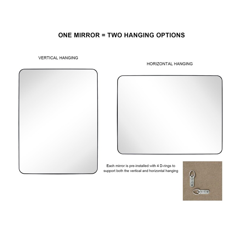 • HORIZONTAL AND VERTICAL HANGING: Each mirror is coming with pre-installed reinforced D-rings in both directions, which allows you to hang either vertically and horizontally, plus all the hanging hardware is included, do not need to bother purchasing any from local hardware store.