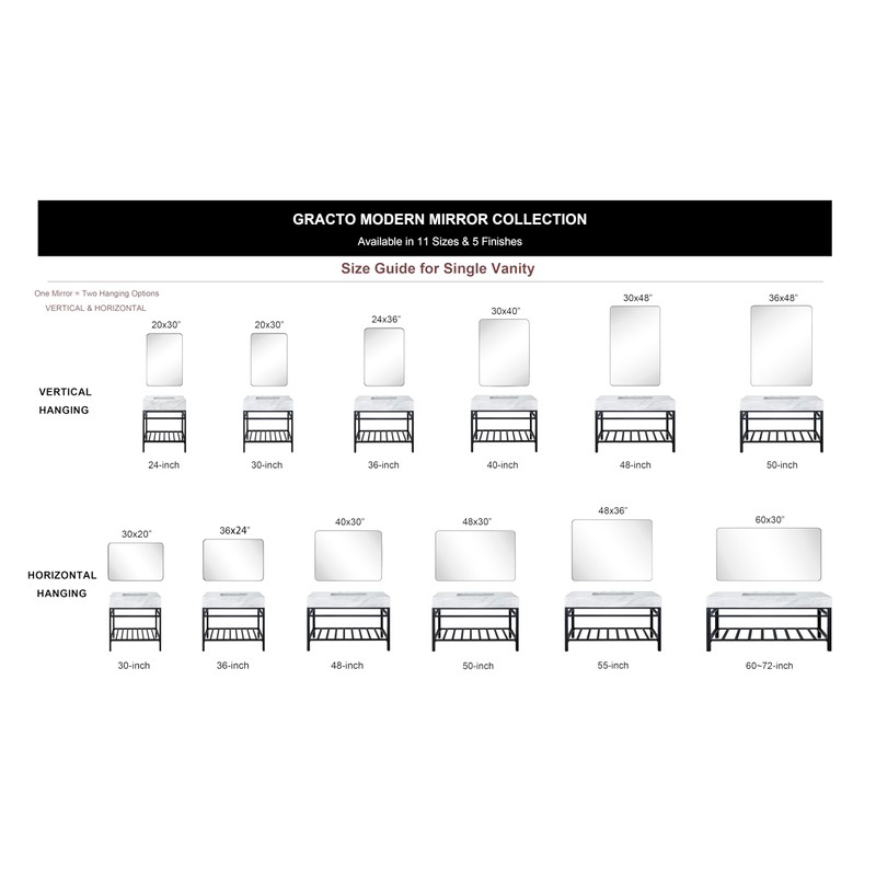 GRACTO 30 x 40'' Chrome Bathroom Rectangle Mirror