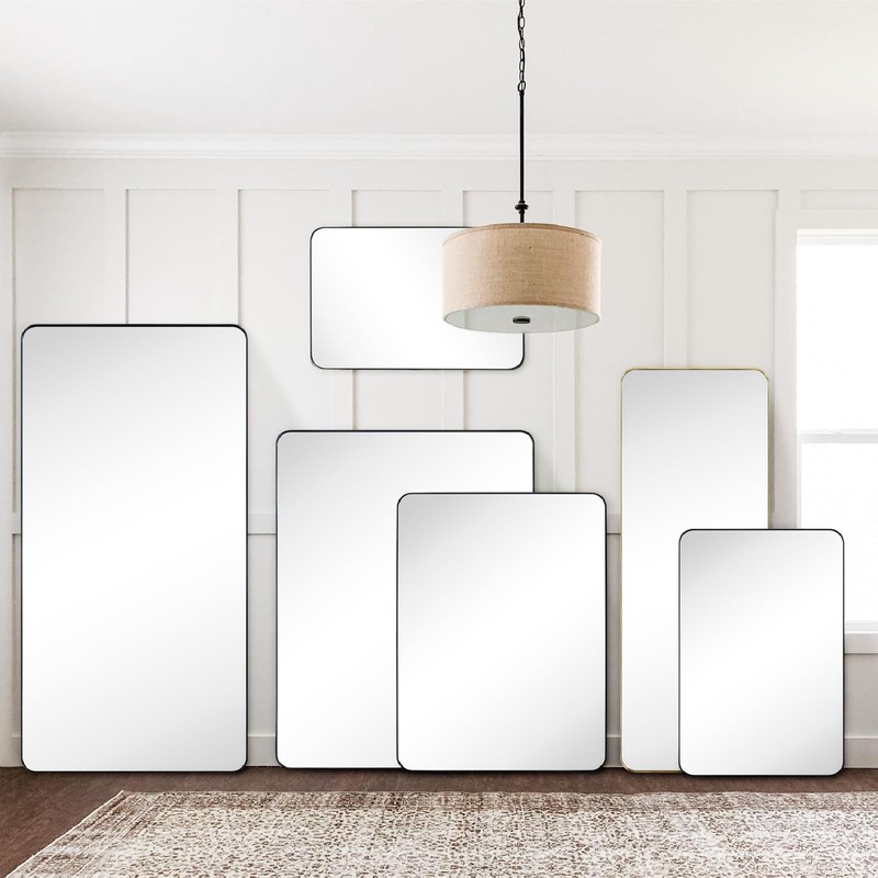 • STAINLESS STEEL FRAME: This rectangular metal framed silver mirror uses preminum quality stainless steel material and solid wood backing to avoid both rust and corrosion when wall mounted, making it perfect super safe for bathroom. Every single mirror is carefully crafted with over 60 processing.
