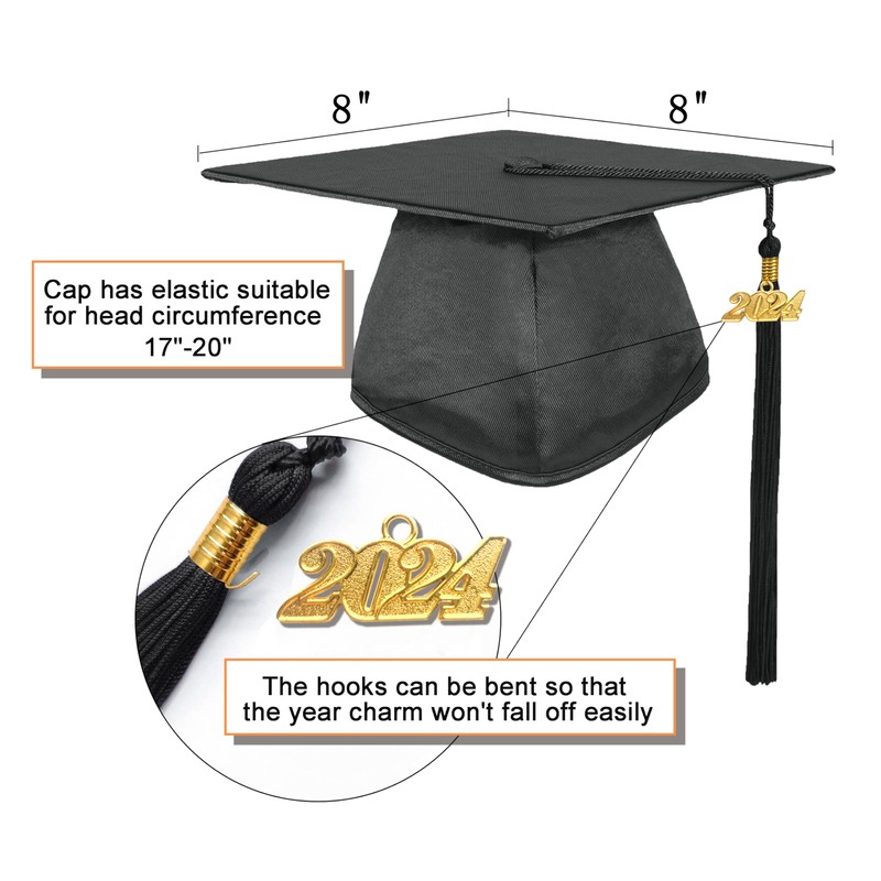 - Package: You will get one Preschool graduation gown,one kindergarten graduation cap and one graduation tassel with 2024 2025 gold year charm. If you receive the wrong charm, please let us know immediately.We will send you the correct year charm