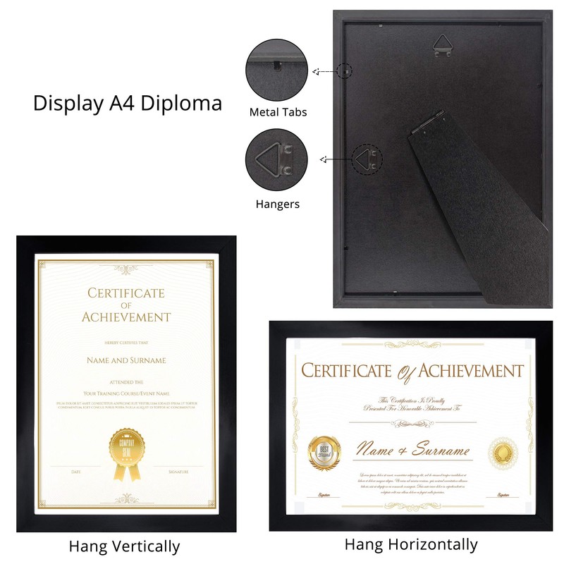 GraduatePro A4 Certificate Frame Black Graduation University with Mount Wood Wall Hanging Tabletop Standing 11x8 Inch