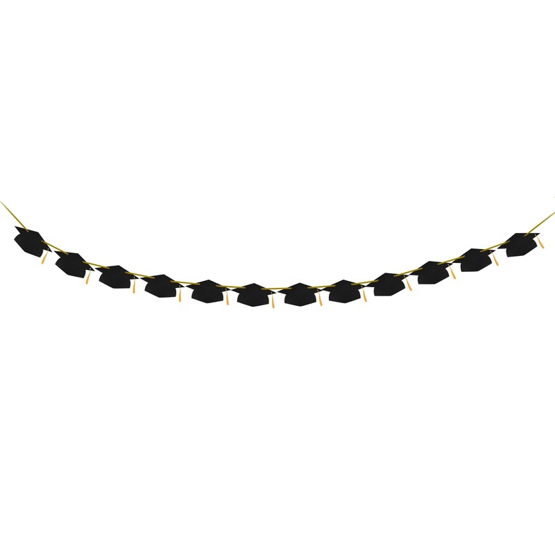 - 【Core Function】Norbiariz Black Graduation Cap Banner (1 Pack) - Features 12 mortarboard motifs with golden tassels1, ideal for 2025 graduation party.