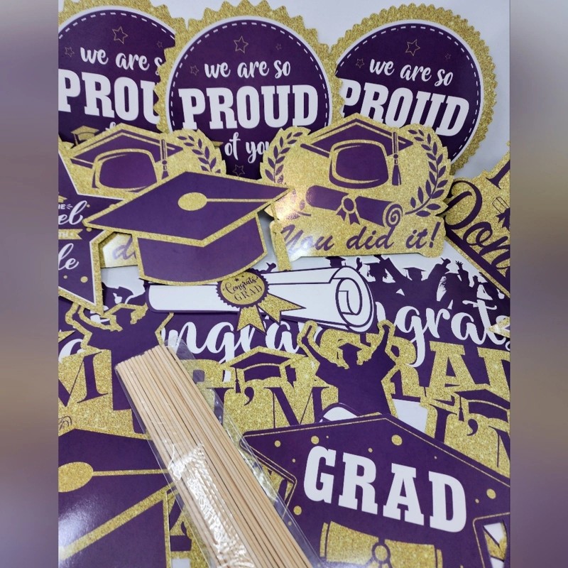 #GraduationDecor #PurpleAndGold #PartySupplies #GradParty #CelebrationDecor #Graduation2024 #FestiveDecor #EventPlanning #NewInPackage #PartyDecorations #GraduationTheme #DecorativeSticks #CelebrateSuccess #VibrantParty #ElegantDecor #UnforgettableCelebration