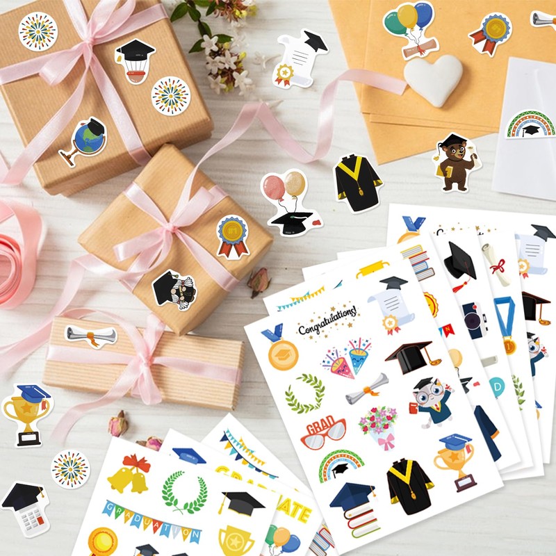 - Graduation Celebration Stickers: Celebrate your academic achievement with our Graduation Stickers! Featuring a diverse range of designs, from classic graduation caps and diplomas to festive confetti and celebratory messages, these stickers add flair to your graduation announcements and party decorations.