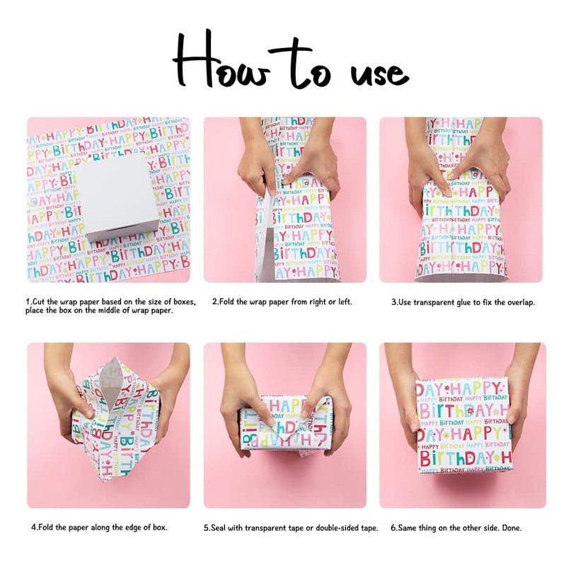 - Wide Application - Our present wrapping paper is great as gift decoration for kids,boys,girls birthday,baby shower on all special events.You can use it to wrap birthday gifts.