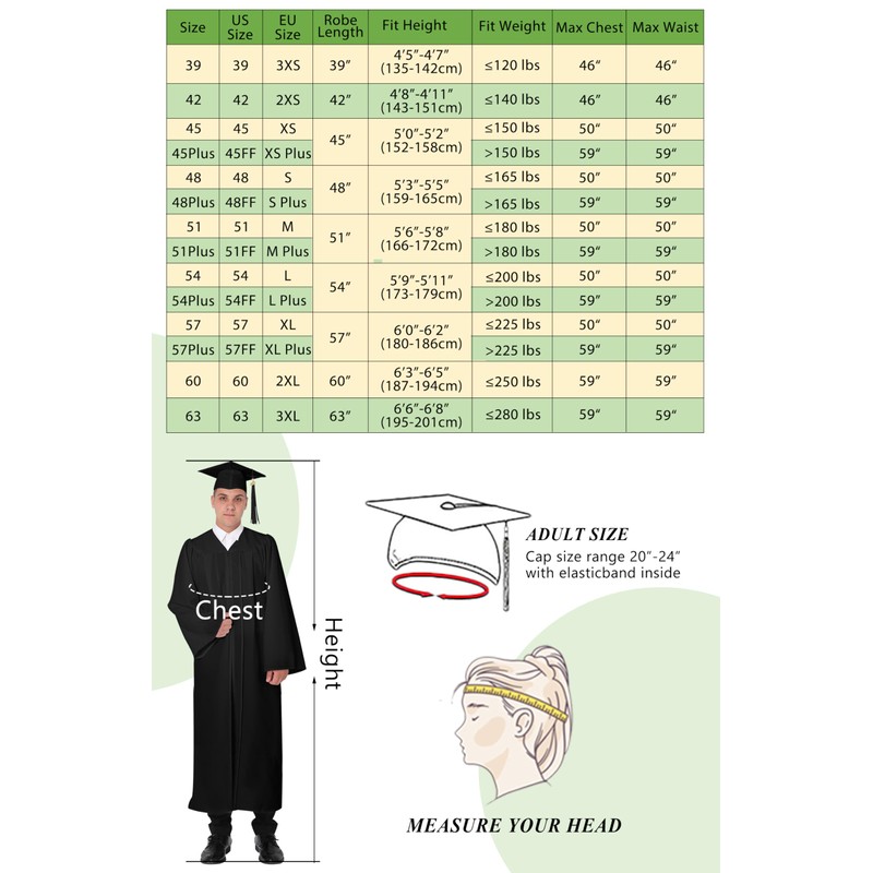 - Gown Size: Robe length 57 inchs, fits height from 6'0" to 6'2", max chest 59 inchs. Note: This is the loose style.