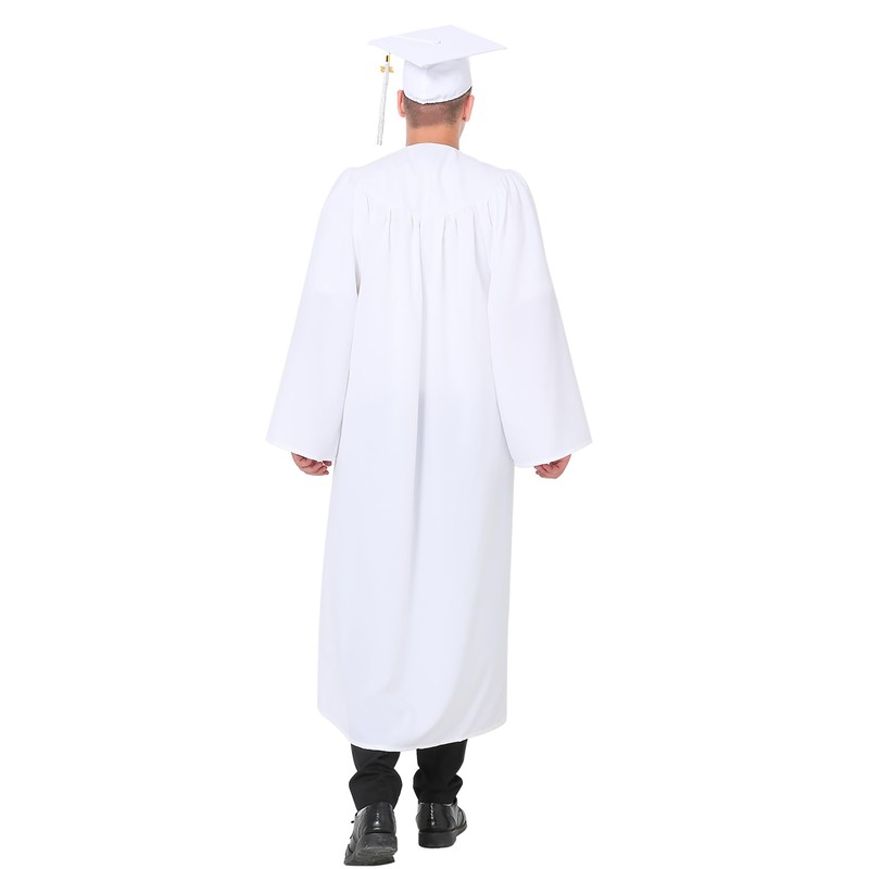 GraduationMall Matte Graduation Gown Cap Tassel Set 2025 for High School and Bachelor White 57 Plus(6'0"-6'2")