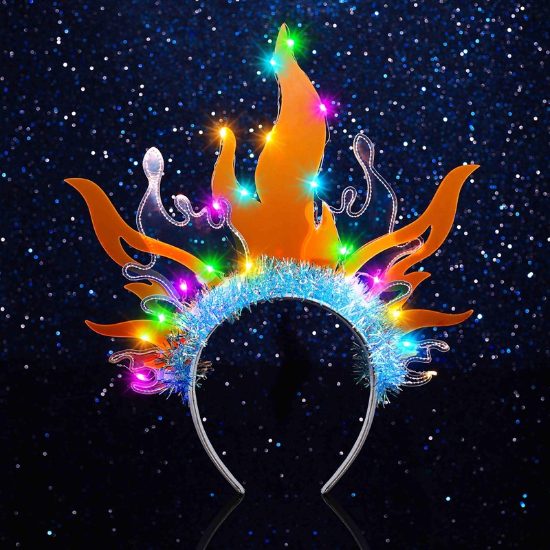 GRAEEN Light Up Fire Headbands Glow Flame Headpiece for Women