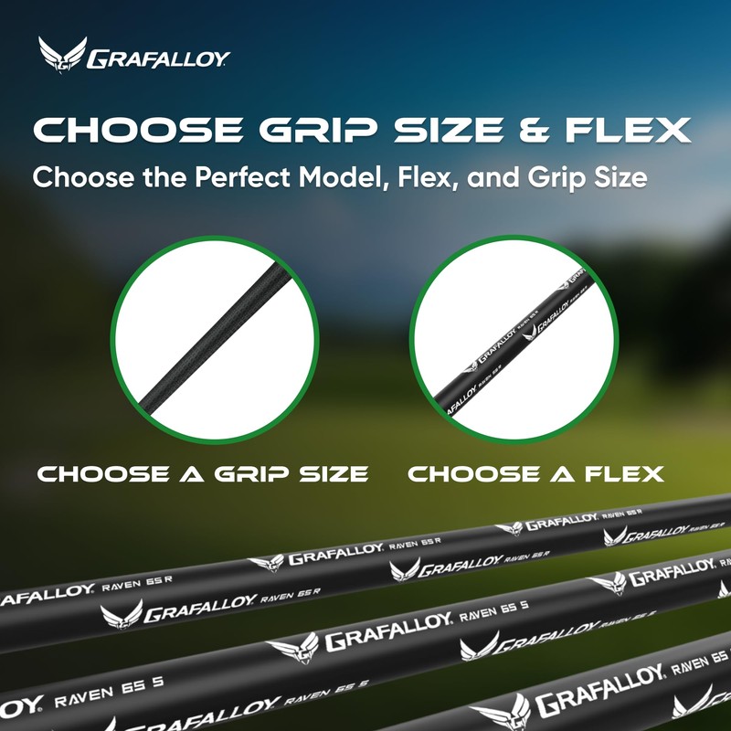 - The Grafalloy Raven is a high quality graphite shaft designed to fit a wide range of golfers. It is a mid-spin and mid-launch shaft with a tip stiffness that is neither too stiff nor too soft for the average player. Sharp-looking black matte finish.