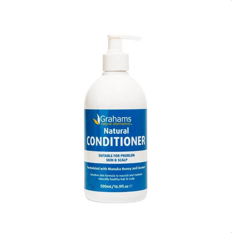 Grahams Natural Conditioner is formulated from an infusion of Olive Leaf Extract and Manuka Honey to add lustre to dull hair and helps reduce reduce frizz. It leaves hair feeling hydrated, softer and more manageable with the added bonus of a natural coconut and honey scent to invigorate the senses! Suitable for those with sensitive scalp.