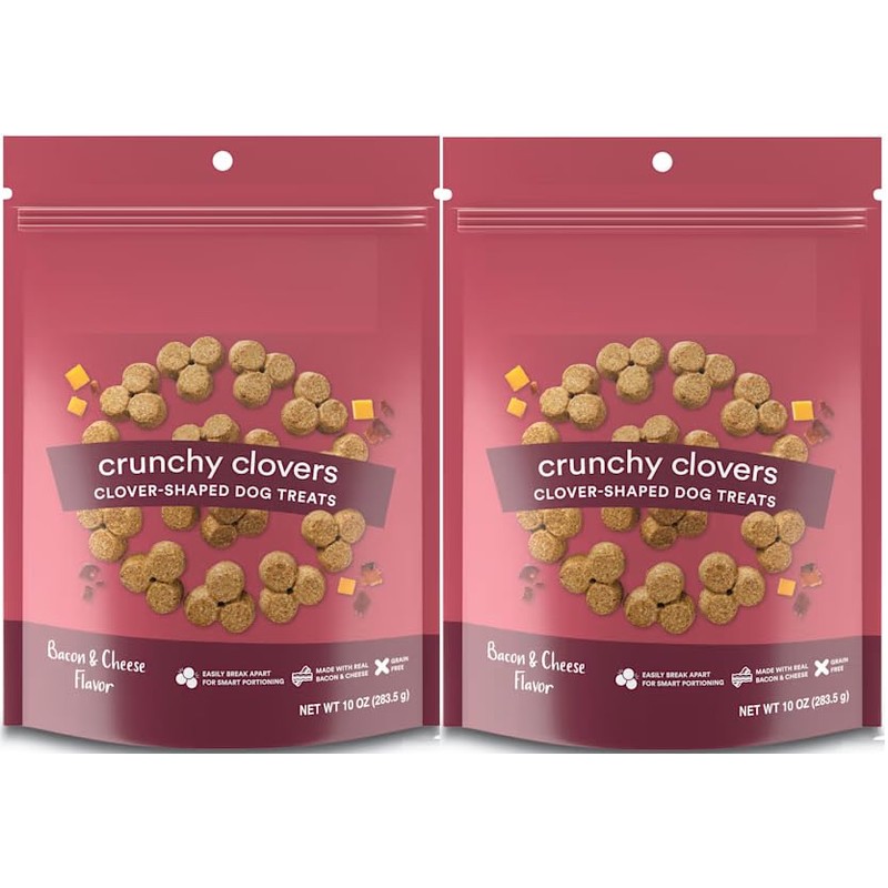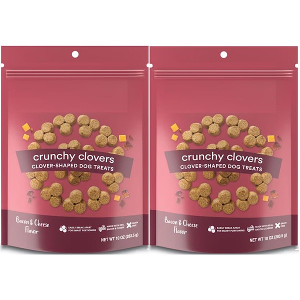 Grain-Free Crunchy Dog Treats – Real Bacon & Cheese – Clover-Shaped Puppy & Adult Biscuits – 10 oz Bag (2, Bacon)
