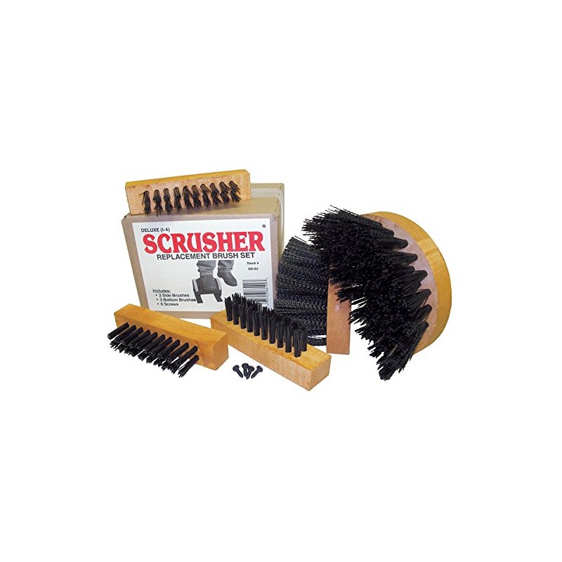 - Price For: Each Includes: Mounting Screws Bristle Color: Black Item: Replacement Brush Set for Standard Scrusher(R) Bristle Material: Polyproplyene Country of Origin (subject to change): United States