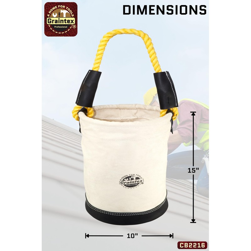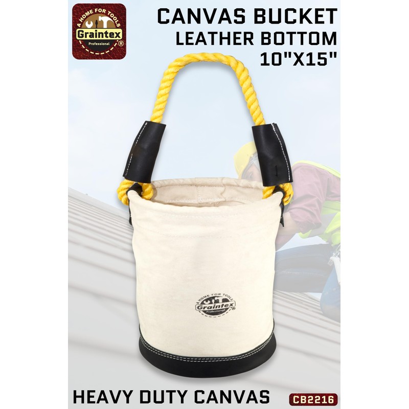 Graintex CB2216 Utility Canvas Bucket Leather Bottom 16" X 10" Rope Handle