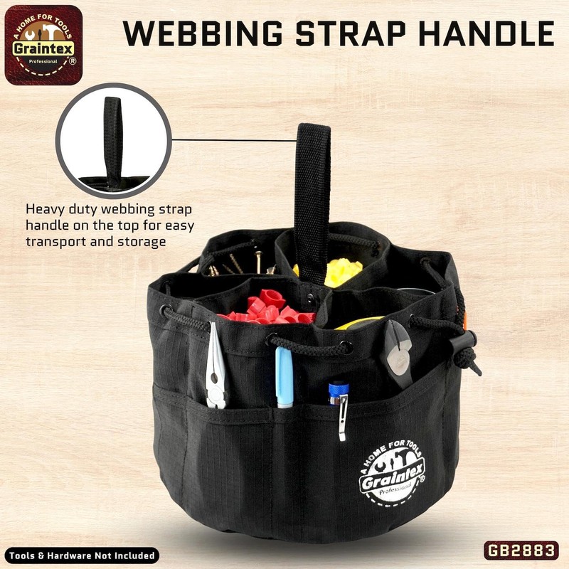 Graintex GB2883 Grab Bag Black Color Rip-stop Canvas 18 Pockets Drawstring Closure