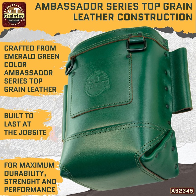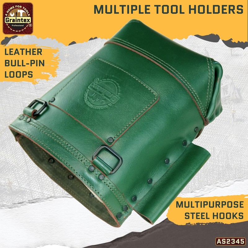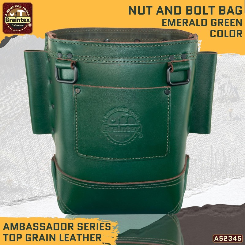 Graintex Nut & Bolt Bag Ambassador Series, Top Grain Leather, Tool Bag, Tool Belt for Ironworker Tools, Durable and Versatile Nut & Bolt Organizer for Professional Use (Emerald Green)