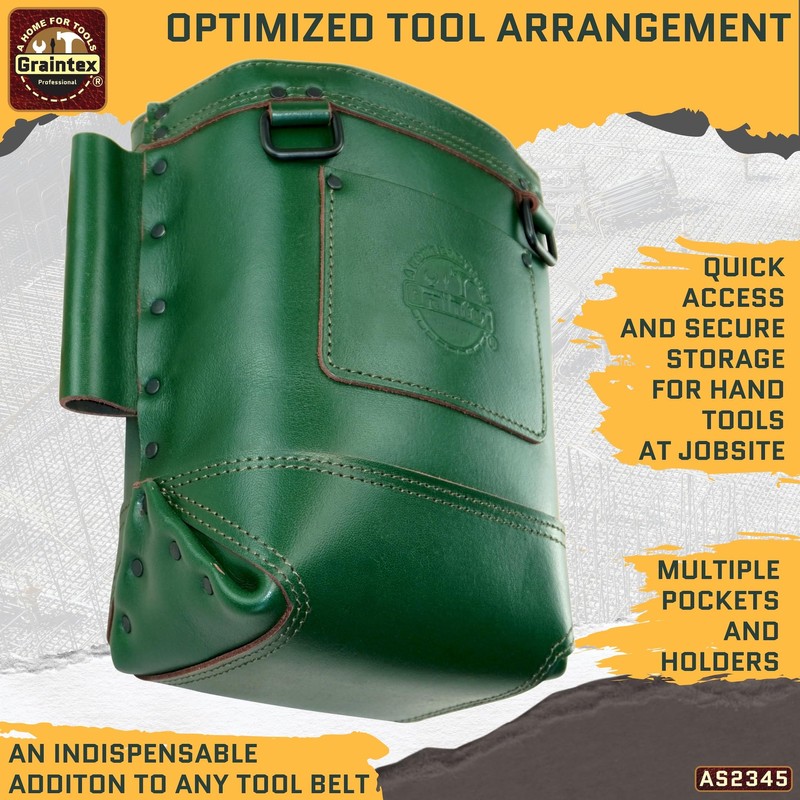 - ☑️ DURABLE CONSTRUCTION: This Graintex bolt bag is expertly crafted from high-quality materials, ensuring long-lasting durability for daily use. Made from Ambassador Series cognac tan color heavy duty genuine top grain leather. Black plated hardware for durability. The Graintex tool pouch offers reliable performance for professional tradespeople. Makes an excellent gift for family and friends