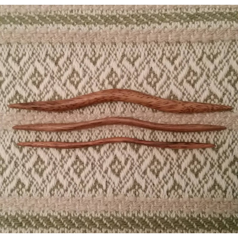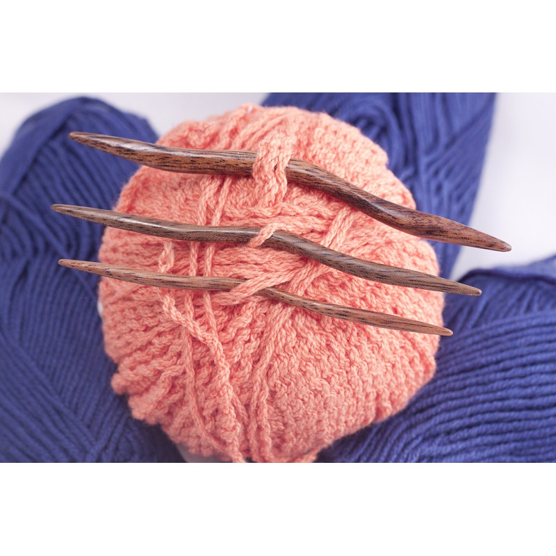 - East Indian Walnut Cable Needles are slightly curved needles that are used to temporarily hold stitches in order to form a cable. My needles are sold as a set of three different lengths and diameters to work with different weights of yarn and are very useful! When using a cable needle, you slip the cables stitches as if purling onto the cable needle. This step insures that the stitches will not be twisted when you work them back into your project.